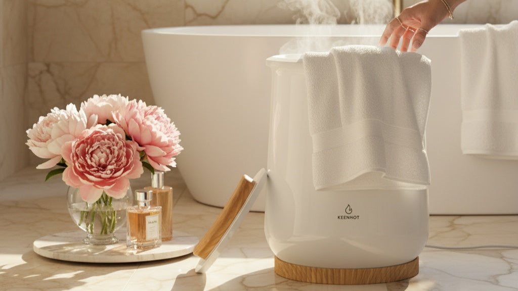 Super satisfied with this amazing towel warmer!It heats very quickly (within minutes) and has very even heating around the bucket. It is set to a perfect temperature, with towels coming out a very soothing warm without burning the skin. It stays on for 60 minutes, allowing you to turn it on before showering and come out to heated towels, but also prevents any safety hazards in case you forget to turn it off or kids accidentally turn it on. The handle and base stay cool, making it very easy to use and prevents you from burning your skin, but also keeps the surrounding surfaces safe. The heated towels feel very comforting and luxurious, especially on a cold day. Living in Canada, this towel warmer is a life saver during the winter.It is super easy to use; there is no assembly required and it only has one button that you use to turn on and off to avoid confusion. The bucket is super spacious; I can fit 3 large bath towels inside, which is way more than needed. Despite the spacious tub and quick heating, the towel warmer is overall very lightweight and easy to move. During heating, it is very silent and not disruptive at all. It is also super great for heating robes and pajamas, which also feel amazing after a long shower or just a cold day. The lid has a slot for aromatherapy tablets, which you can use to make your towels/clothes smell amazing while they’re being heated (not required for use though, in case there are any allergies and such). The tablets also leave a subtle but soothing smell in the entire bathroom. The bucket comes with one tablet, that smells amazing in my opinion.Lastly, despite the large capacity, the bucket looks great inside the bathroom and not too bulky. I got the snow white color, which looks super sleek and elevates the look of my bathroom. The surfaces of the warmer are super easy to clean and wipe down, so maintenance is not an issue either.The only con that I can think of is that it is a little bit on the pricier side, being more of a luxury than a necessity. In addition, as more of a usage tip rather than a con, I would recommend to put the towels or whatever you’re heating inside the towel warmer unfolded rather than the traditional spa-like “rolled” approach. Rolling up the towels results in only the outside of the roll (that is touching the warmer) to be heated due to the roll being too thick for heat to transfer. Also putting things in one at a time results in more efficient heating, and due to its quick heating time I don’t find putting towels in one at a time to be a major inconvenience.Overall, I would say it is worth the price and allows you to recreate a luxurious, spa-like feeling at home whenever you want super easily. It is easy to use, quick and efficient, looks amazing and feels amazing. The warmer would also make an excellent gift in my opinion, as it is a luxury that anyone can and would enjoy. 100% recommend to anyone who is looking to elevate their lifestyle.